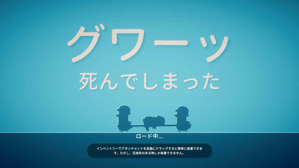 視界は正面方向の一部に限定されるので、常に四方八方を確認して安全を確保していく、いわゆる“クリアリング”が重要。もちろん音も大事で「グワッグワッ!」という敵アヒルの鳴き声や足音、犬の鳴き声にも注意しなければいけません。そのあたりも本格的なシュータータイトルさながらというわけです。