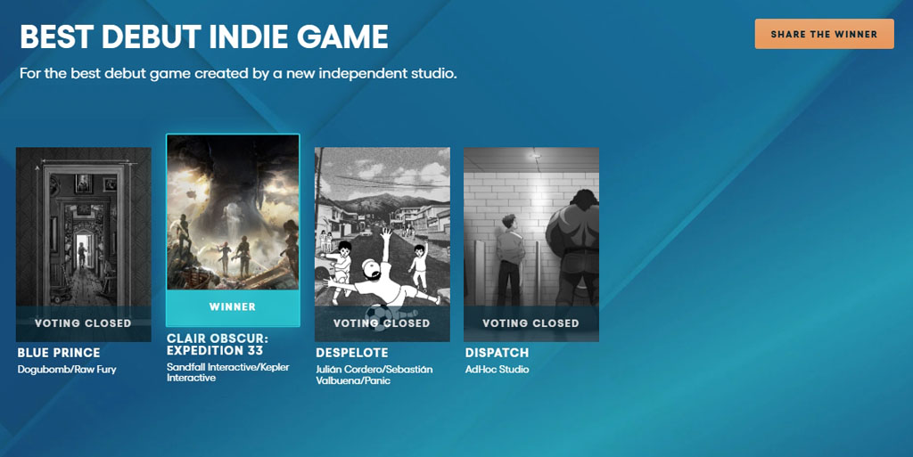 と、いうわけでベストインディー、デビューインディーともに『Clair Obscur: Expedition 33』でした。