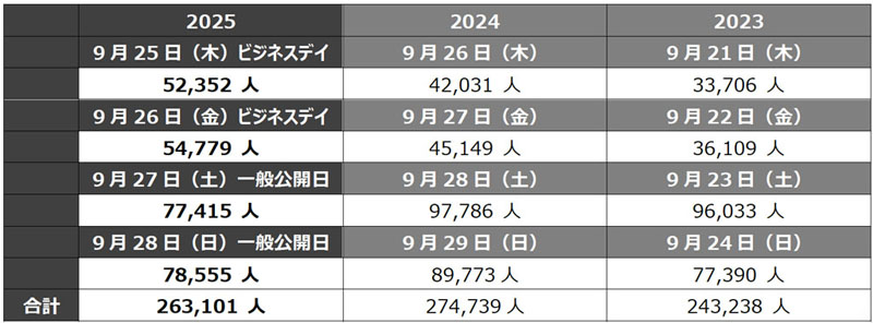 2026年の開催日は9月17日(木)~21日(月・祝)。ビジネスデイが2日、一般日が3日となります!