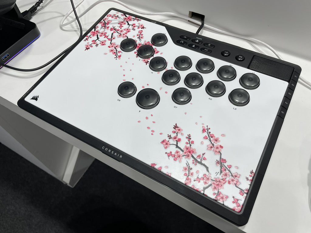 キーボード製品を多く扱うCorseirも、何とレバーレスを販売。こちらは『ストリートファイター6』のプレイヤーである台湾のOil King氏に意見を伺いつつ、同社のキーボード製品からのノウハウも反映させているとのこと。ボタンキャップが丸みがあってキャップの高さも高めなのが特徴的ですが、ラピッドトリガーなのでAPは0.1mmから4.00mmまで調節可能。
