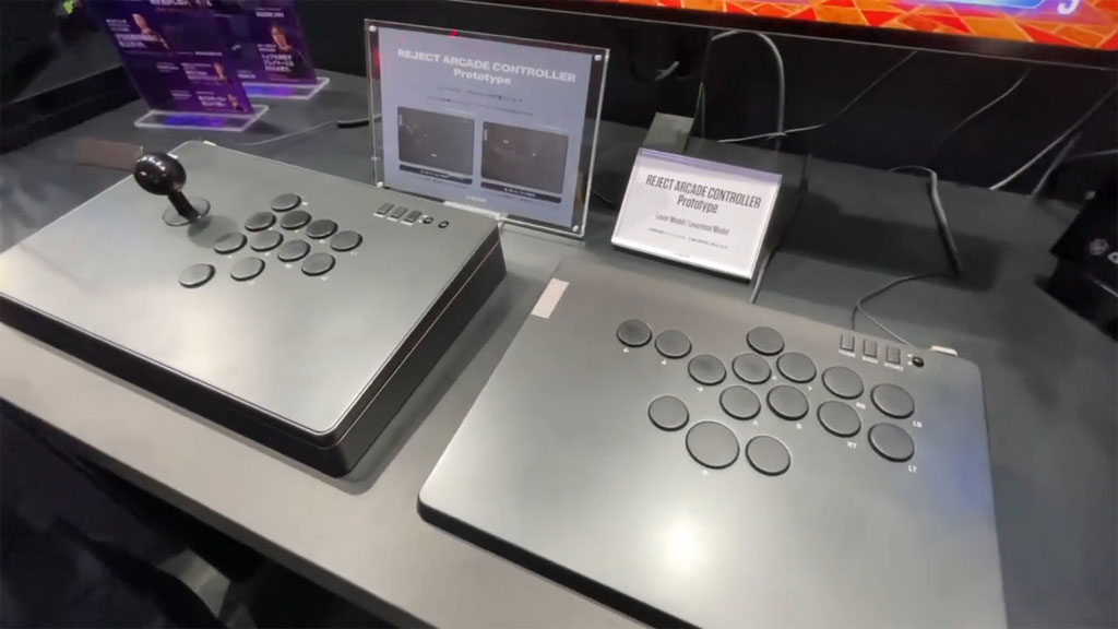 ゲーミングチームREJECTが制作中というアケコン・レバーレス。ボタンキャップの薄さやストロークの浅さなど気になるポイントが見られましたが、いずれにおいてもまだまだ試作段階で未定とのこと。
